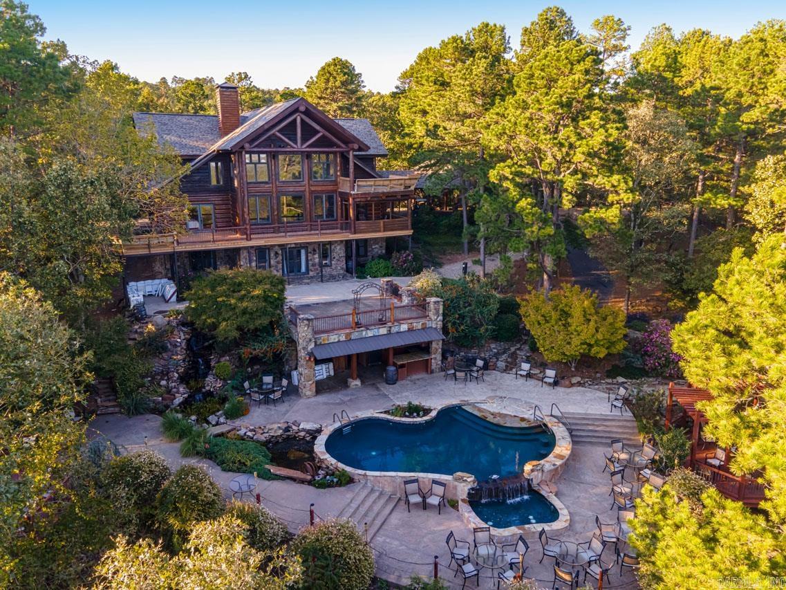 there is round-table seating for your guests next to the infinity pool and waterfall. Our pool-side bar